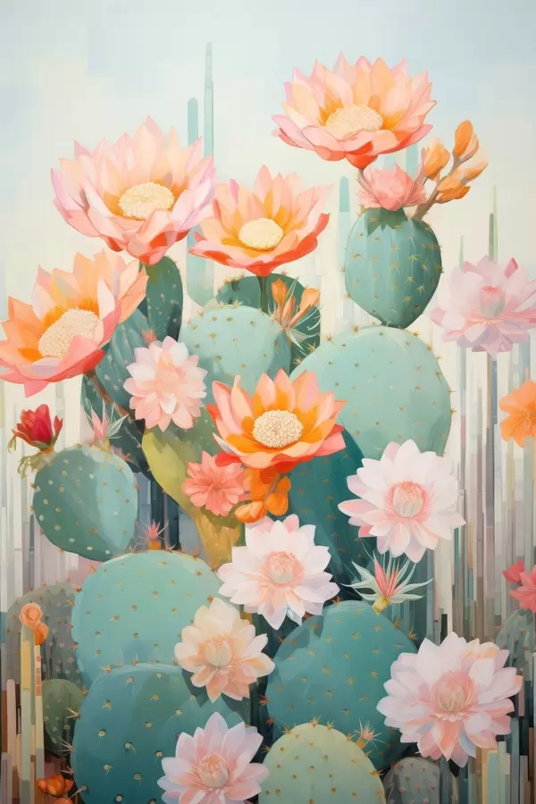 Poster Giardino di fiori di cactus in una delicata palette di colori pastello in stile illustrativo Nr f46935