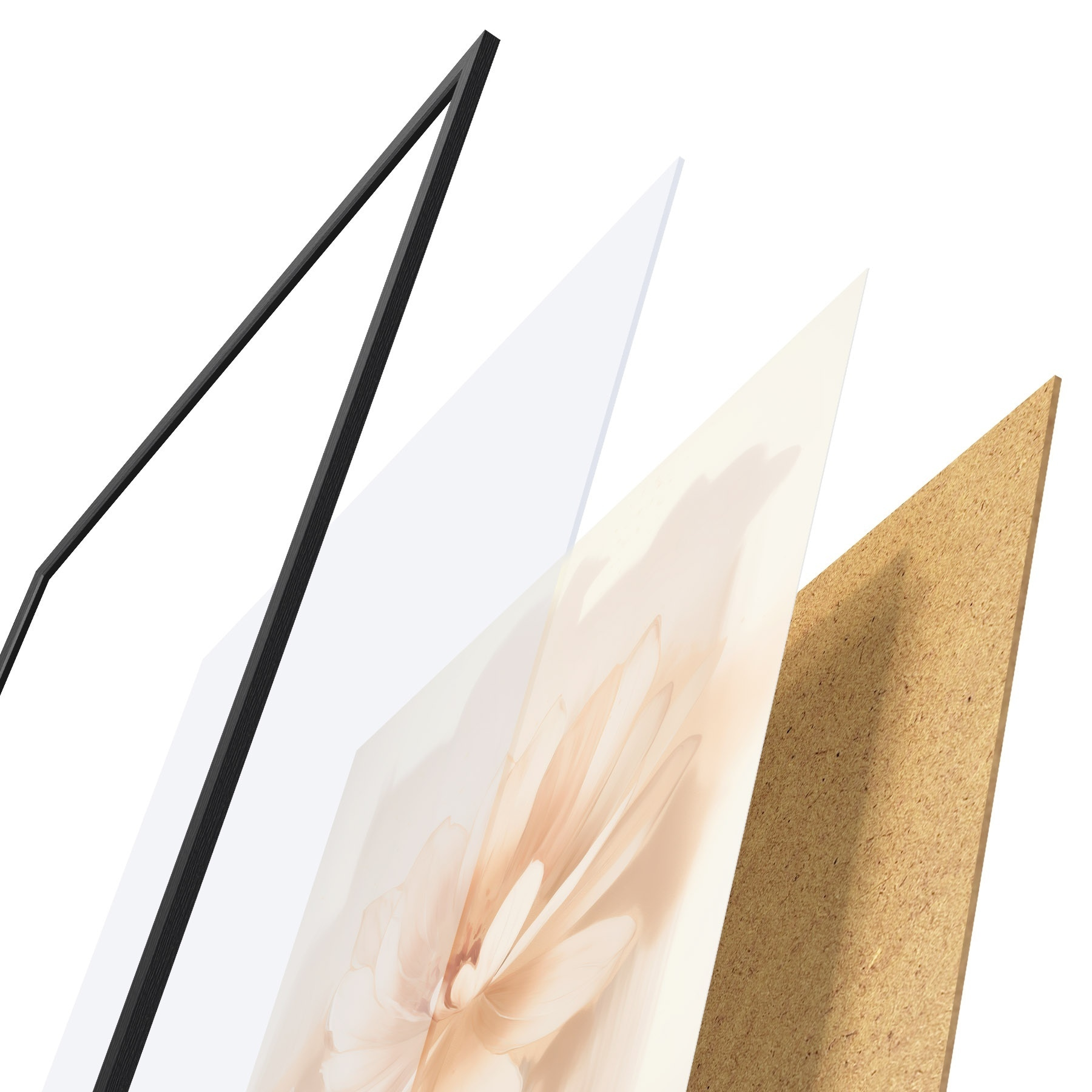 Il poster è composto da cornice, plexiglass, immagine stampata e supporto in truciolato. Il poster può essere immediatamente appeso alla parete grazie ai supporti sul retro.