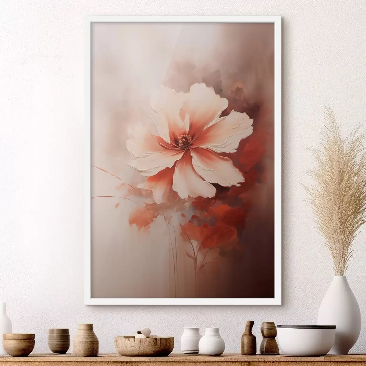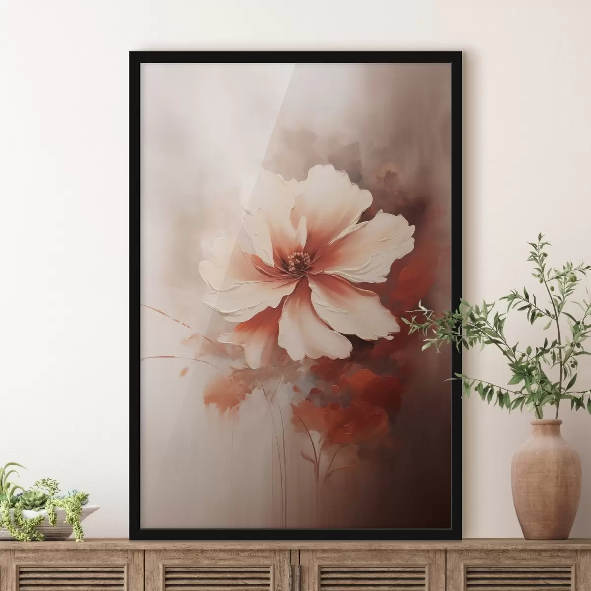 Poster Delicato fiore bianco corallo su sfondo sfocato in stile pittura a olio Nr f46938