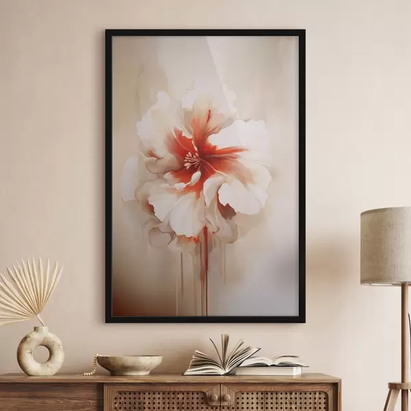 Poster Fiore bianco e rosso con petali semitrasparenti e gocce di vernice che colano f46940