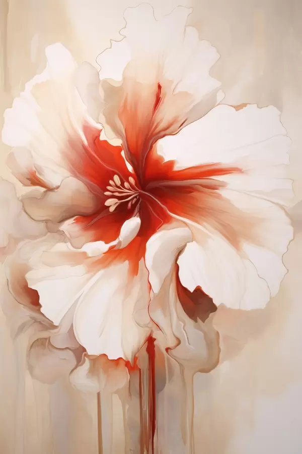 Poster Primo piano di un fiore bianco e rosso con petali semitrasparenti e gocce di vernice che colano Nr f46941