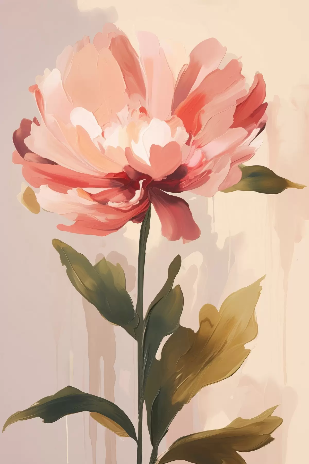 Poster Peonia con petali rosa corallo in uno stile illustrativo moderno f46948