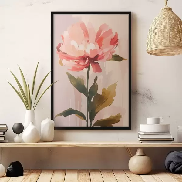 Poster Peonia con petali rosa corallo in uno stile illustrativo moderno Nr f46948
