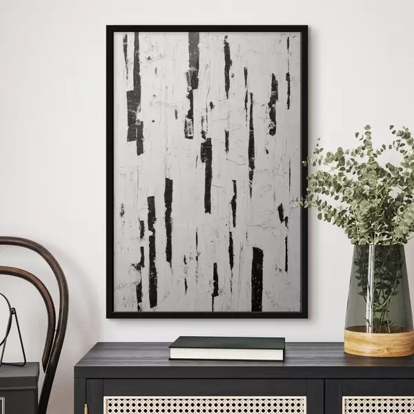 Poster Composizione astratta con pennellate verticali nere su sfondo bianco in stile pittura a olio Nr f46956