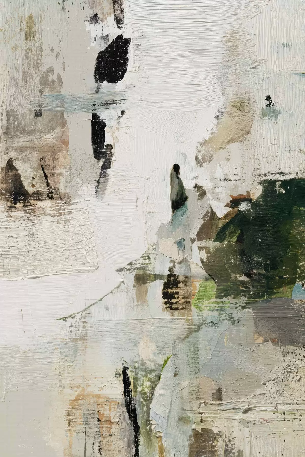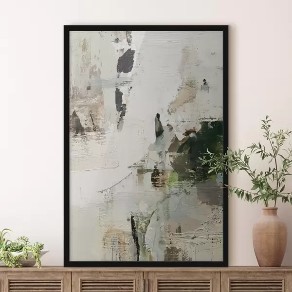 Poster Composizione astratta in tonalità pastello con accenti verde scuro in stile pittura a olio Nr f46960