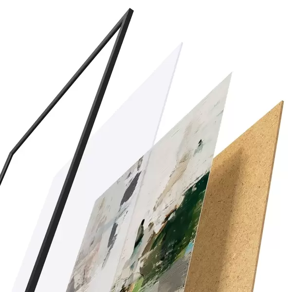 Il poster è composto da cornice, plexiglass, immagine stampata e supporto in truciolato. Il poster può essere immediatamente appeso alla parete grazie ai supporti sul retro.