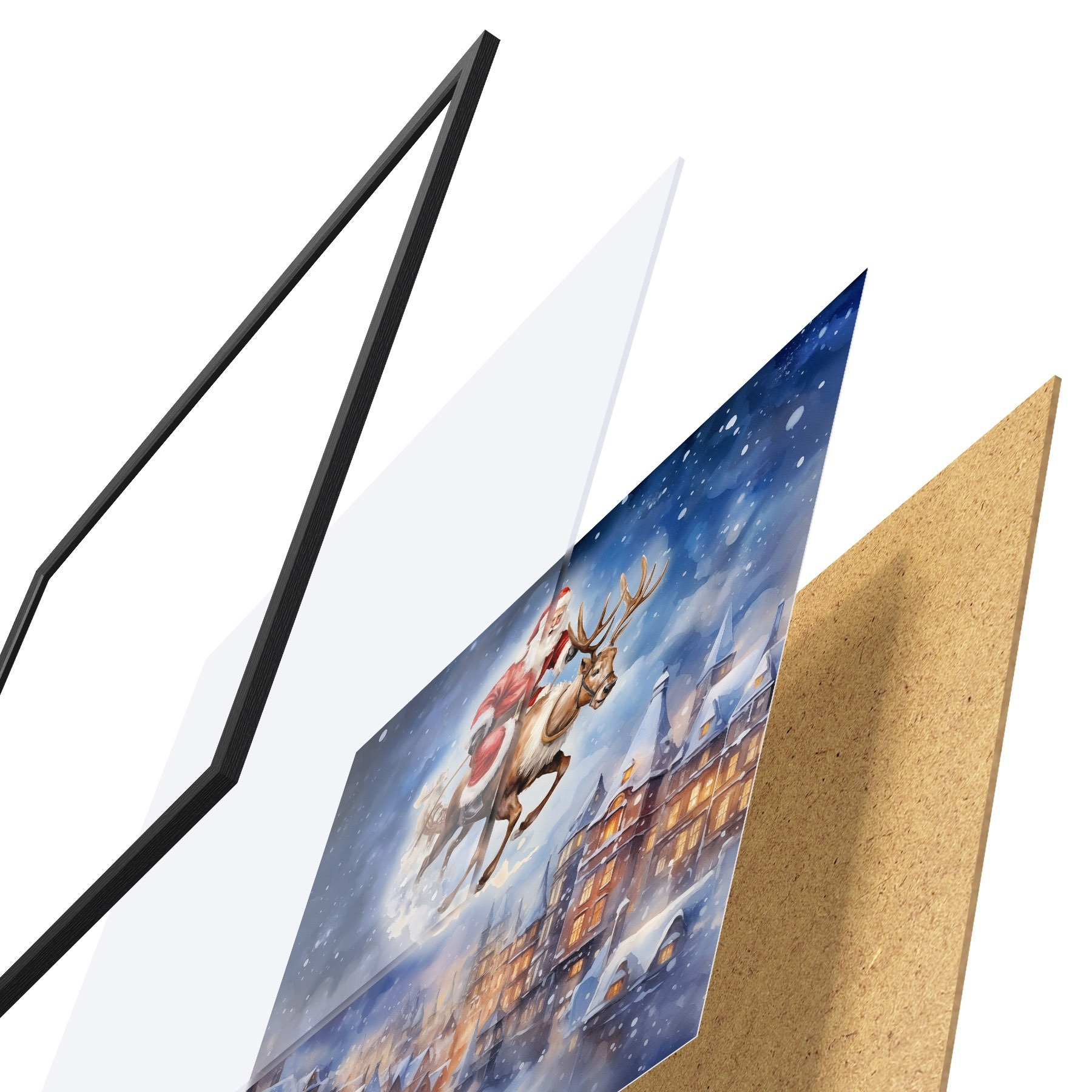 Il poster è composto da cornice, plexiglass, immagine stampata e supporto in truciolato. Il poster può essere immediatamente appeso alla parete grazie ai supporti sul retro.