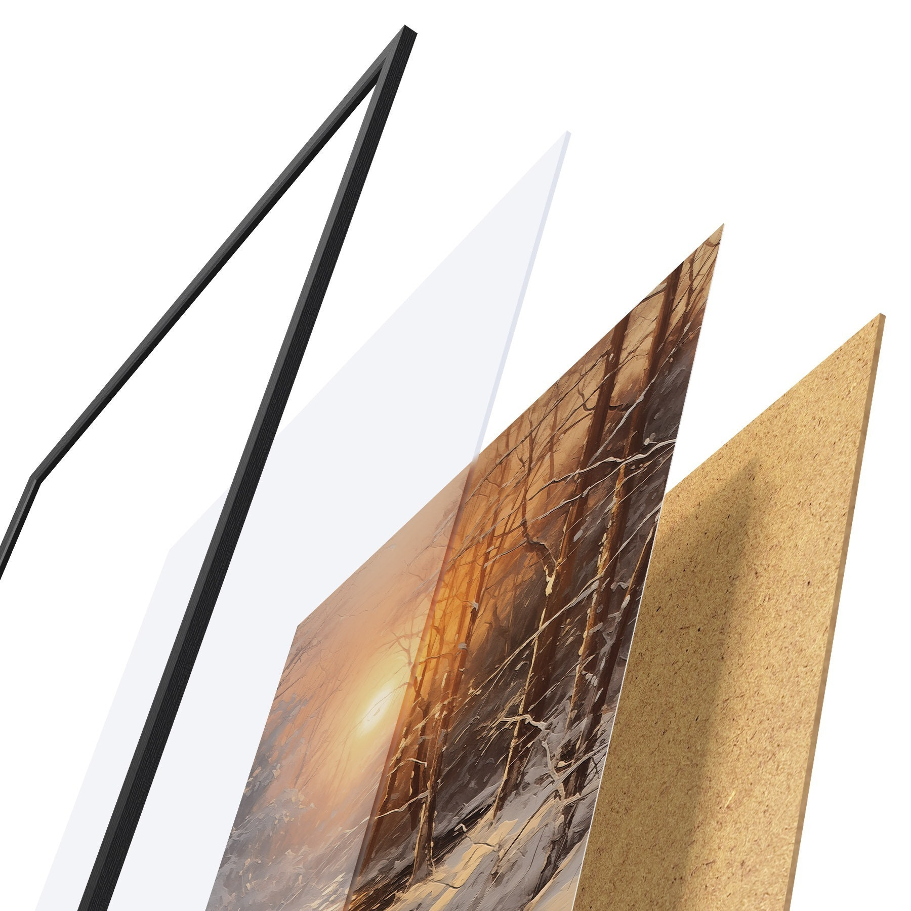 Il poster è composto da cornice, plexiglass, immagine stampata e supporto in truciolato. Il poster può essere immediatamente appeso alla parete grazie ai supporti sul retro.