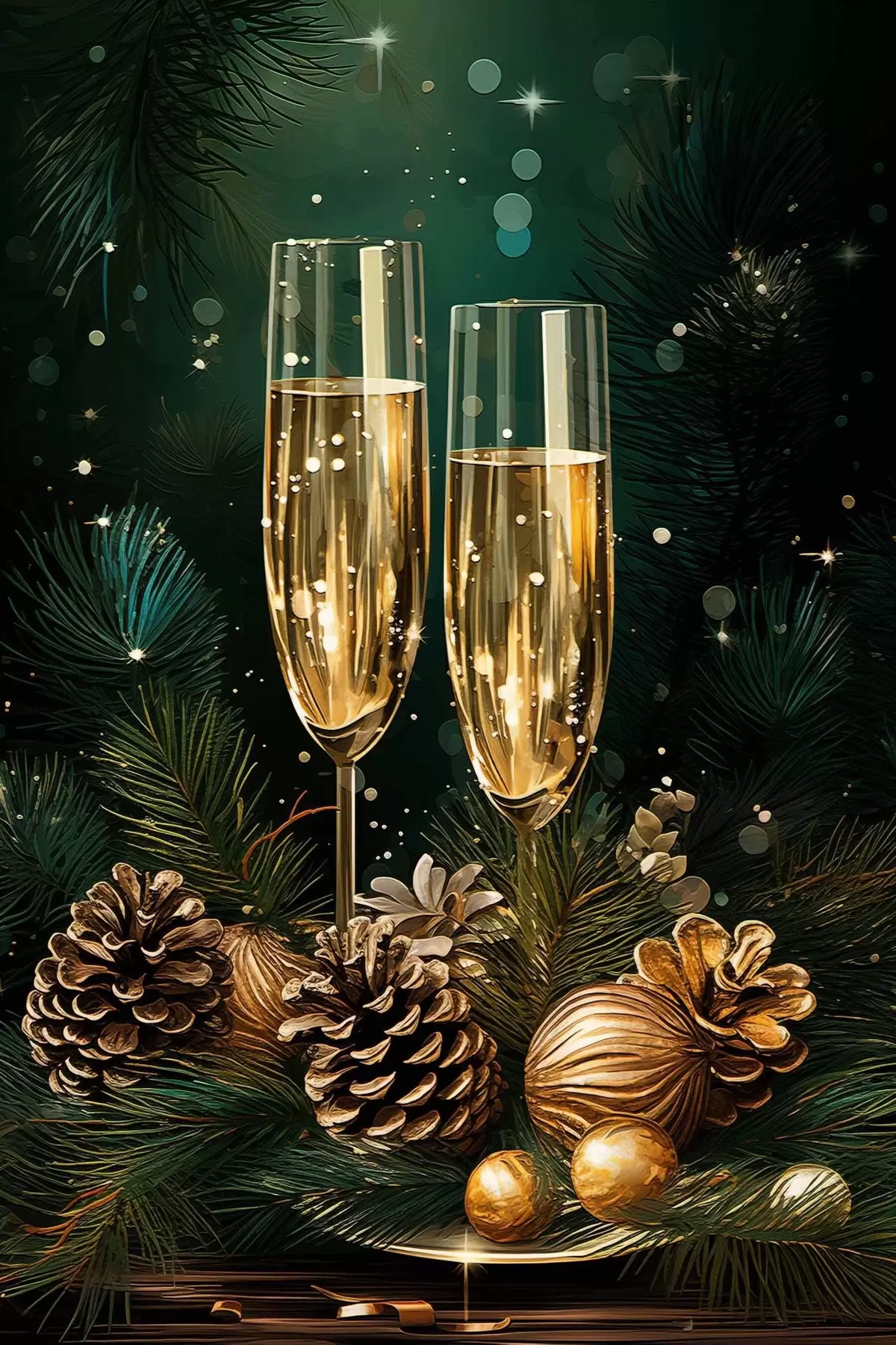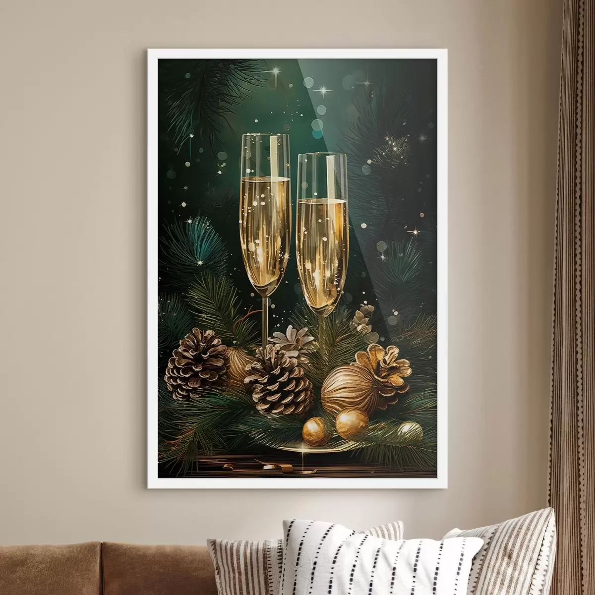 Poster Composizione di Capodanno, bicchieri da champagne Nr f46981