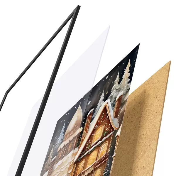 Il poster è composto da cornice, plexiglass, immagine stampata e supporto in truciolato. Il poster può essere immediatamente appeso alla parete grazie ai supporti sul retro.