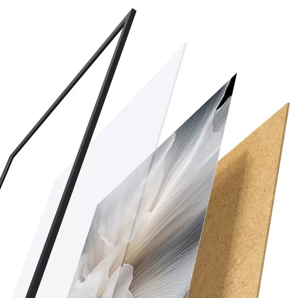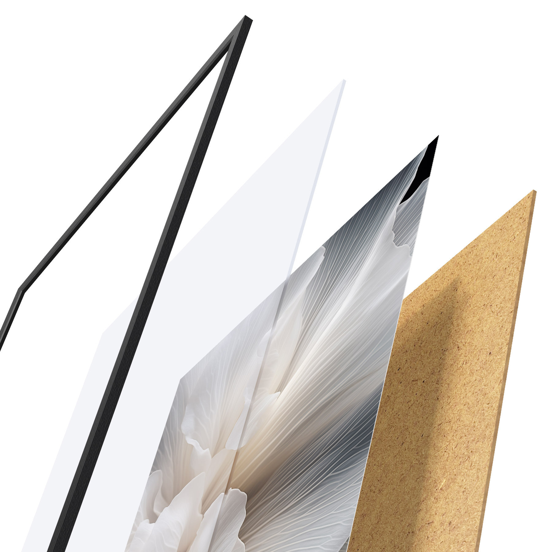 Il poster è composto da cornice, plexiglass, immagine stampata e supporto in truciolato. Il poster può essere immediatamente appeso alla parete grazie ai supporti sul retro.