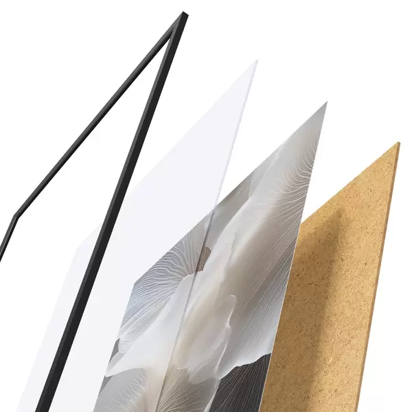 Il poster è composto da cornice, plexiglass, immagine stampata e supporto in truciolato. Il poster può essere immediatamente appeso alla parete grazie ai supporti sul retro.