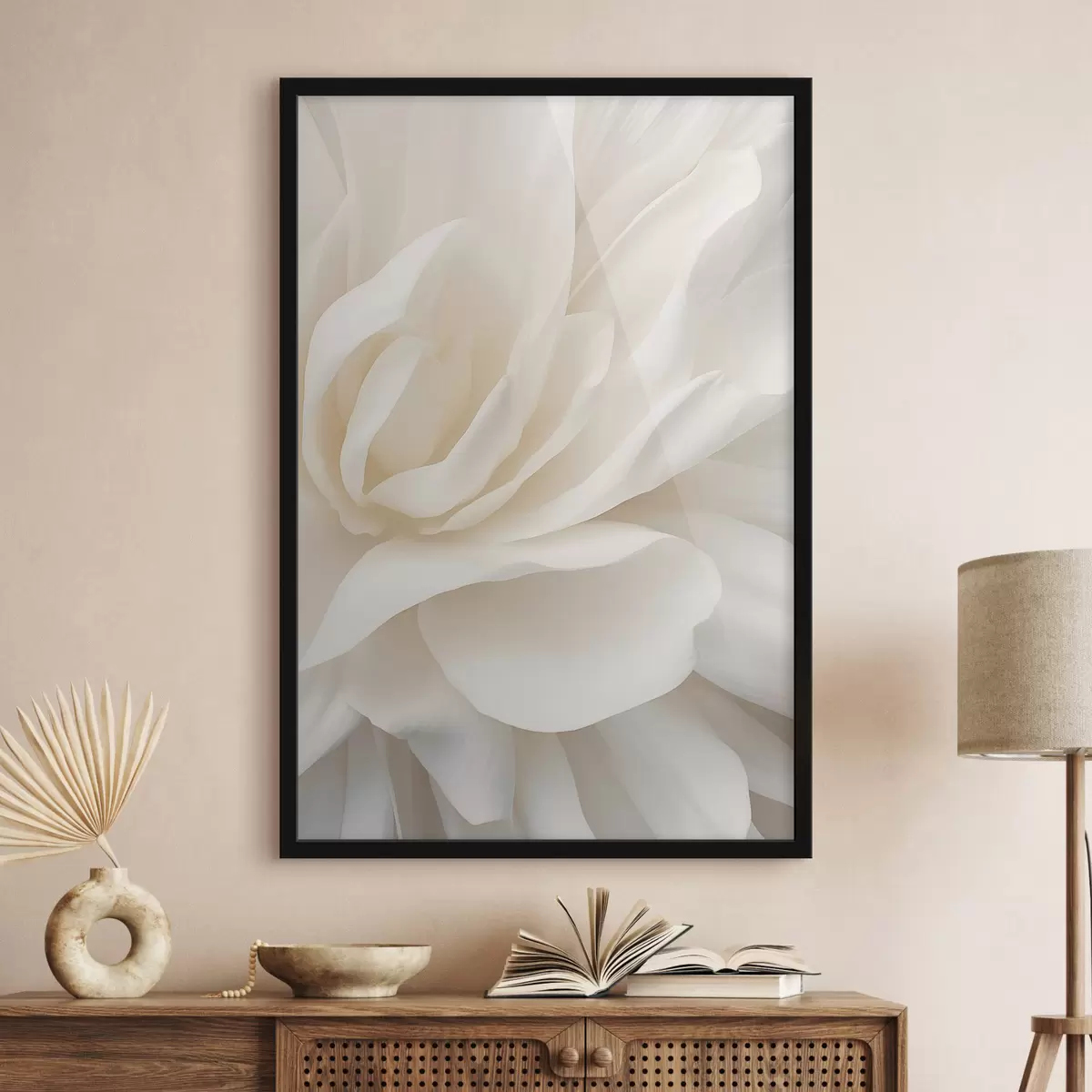 Poster Fiore bianco astratto con petali delicati e stratificati, arte minimalista Nr f47024