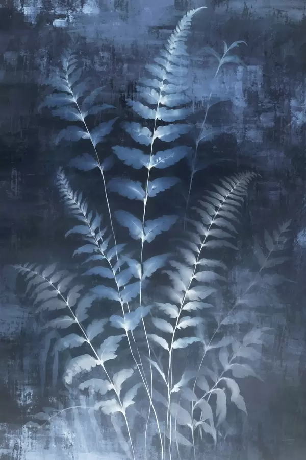 Poster Felci blu e piante su uno sfondo scuro e strutturato, con particolare attenzione ai dettagli intricati, effetto radiografico Nr f47027