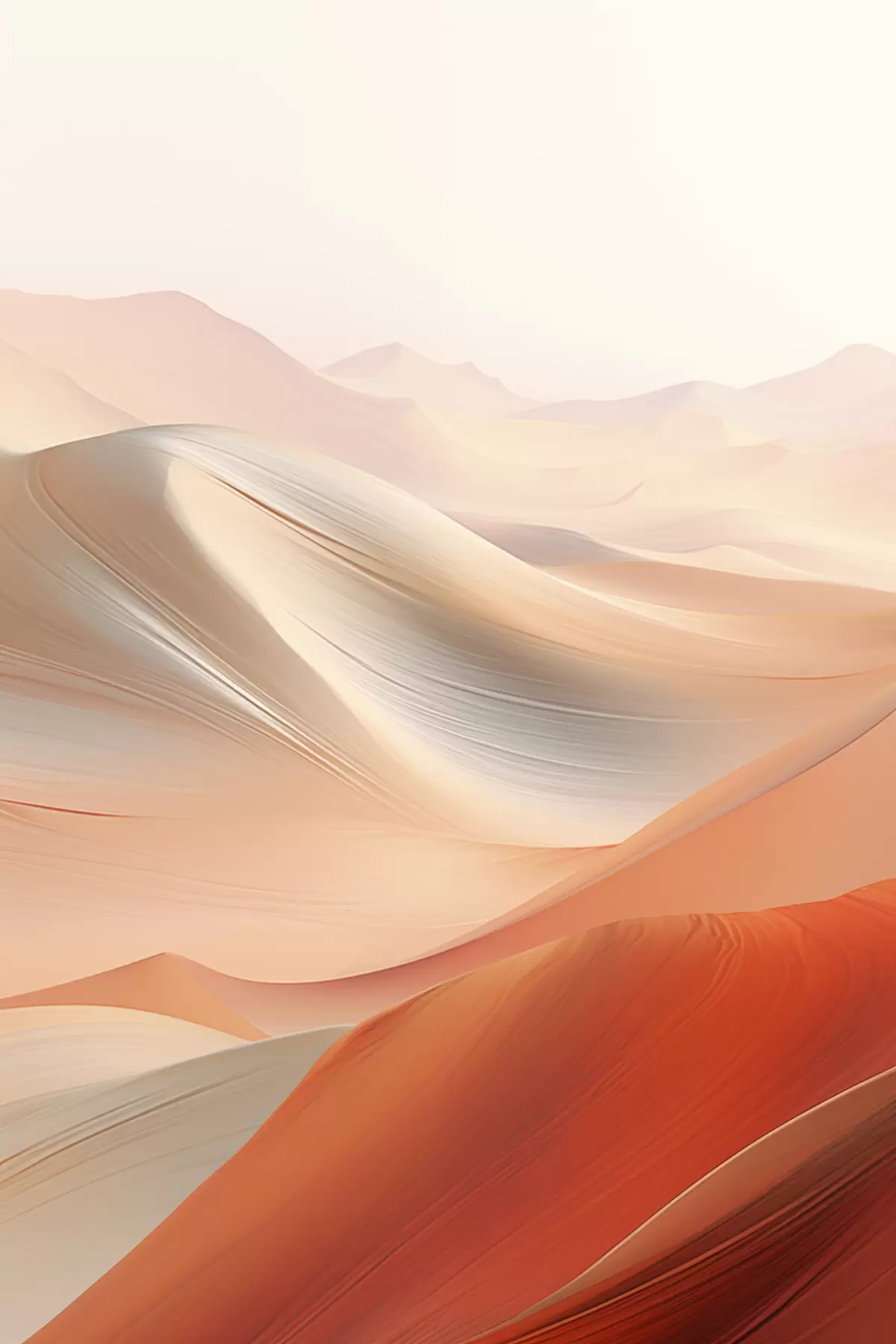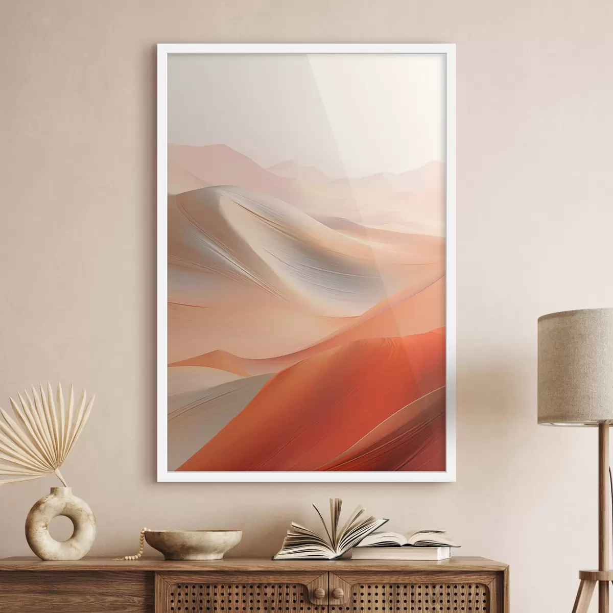 Poster Paesaggio desertico astratto con dune di sabbia fluenti nei toni caldi dell'arancio e del bianco Nr f47030