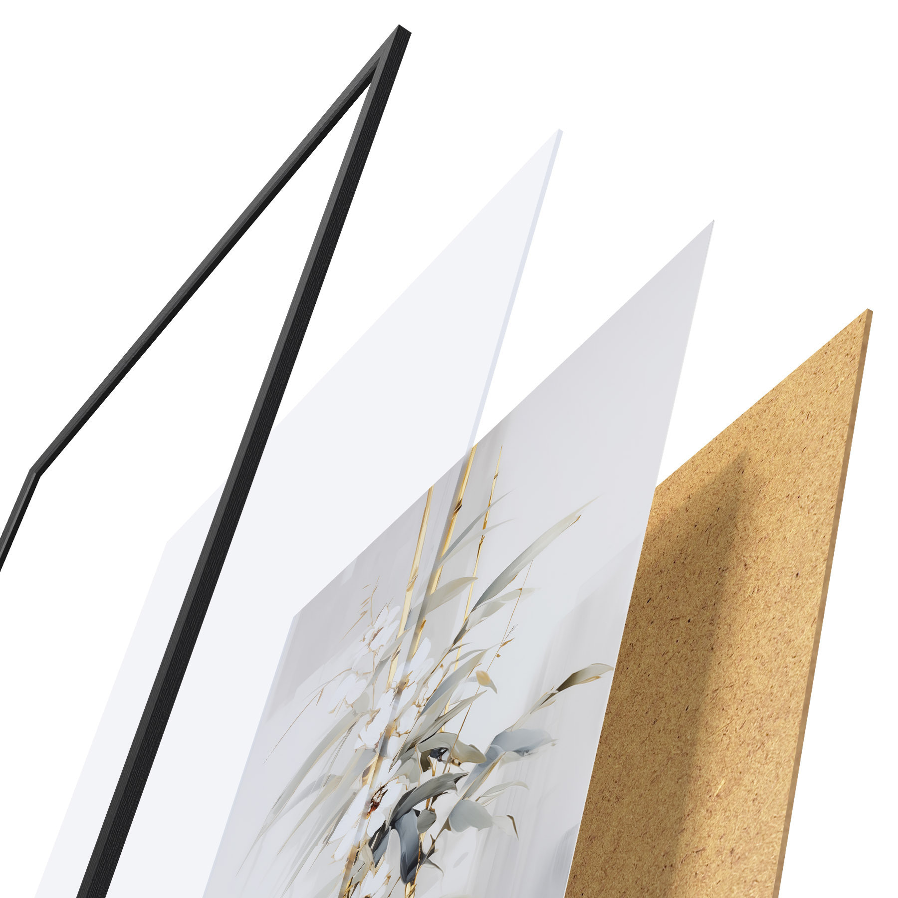 Il poster è composto da cornice, plexiglass, immagine stampata e supporto in truciolato. Il poster può essere immediatamente appeso alla parete grazie ai supporti sul retro.