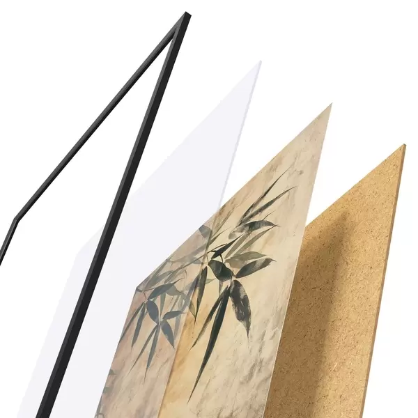 Il poster è composto da cornice, plexiglass, immagine stampata e supporto in truciolato. Il poster può essere immediatamente appeso alla parete grazie ai supporti sul retro.