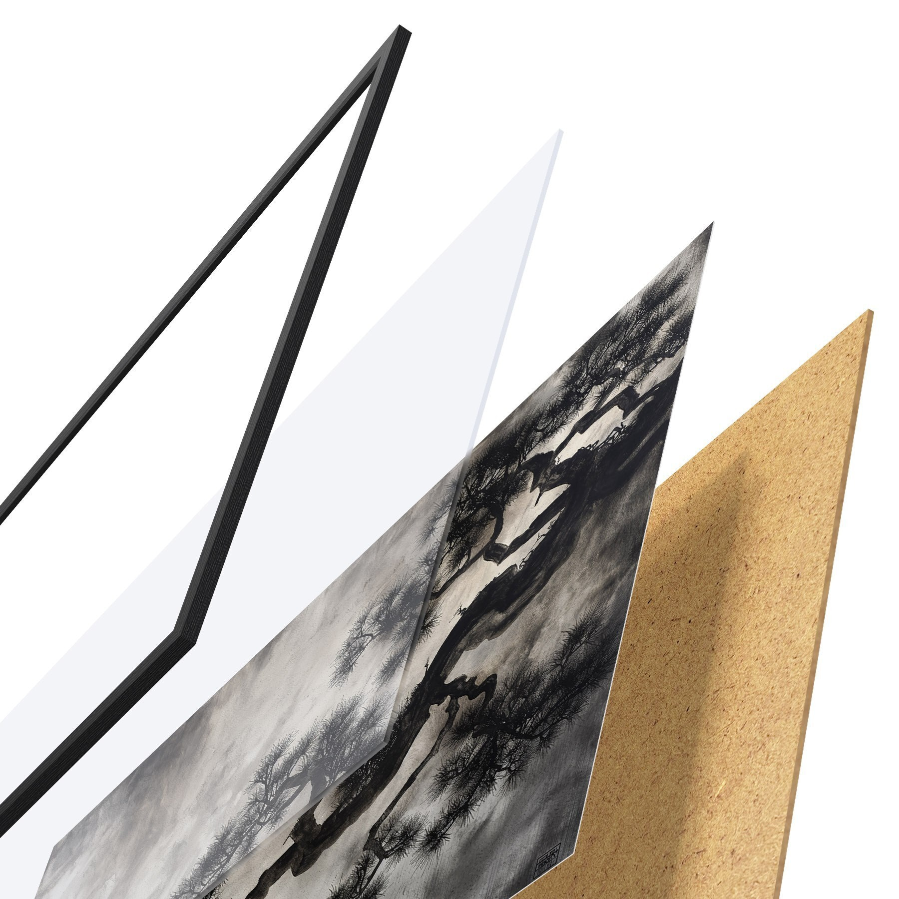 Il poster è composto da cornice, plexiglass, immagine stampata e supporto in truciolato. Il poster può essere immediatamente appeso alla parete grazie ai supporti sul retro.
