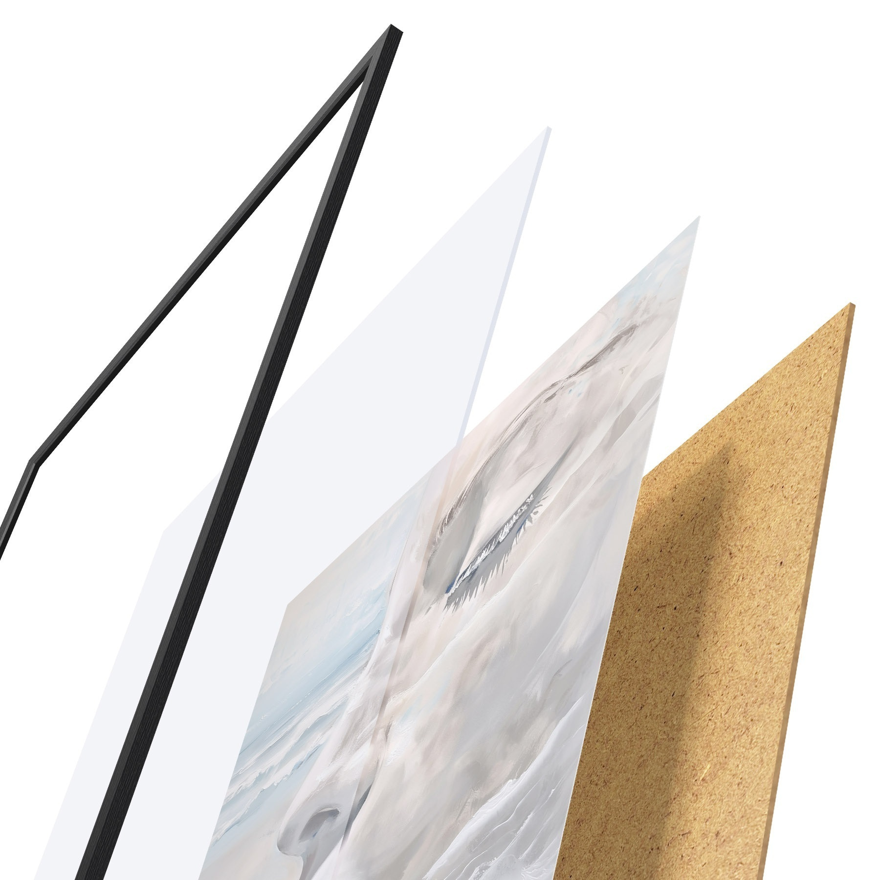 Il poster è composto da cornice, plexiglass, immagine stampata e supporto in truciolato. Il poster può essere immediatamente appeso alla parete grazie ai supporti sul retro.