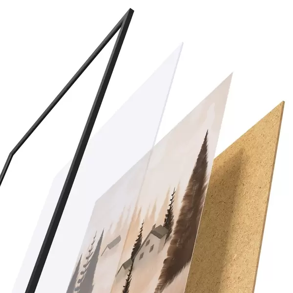 Il poster è composto da cornice, plexiglass, immagine stampata e supporto in truciolato. Il poster può essere immediatamente appeso alla parete grazie ai supporti sul retro.