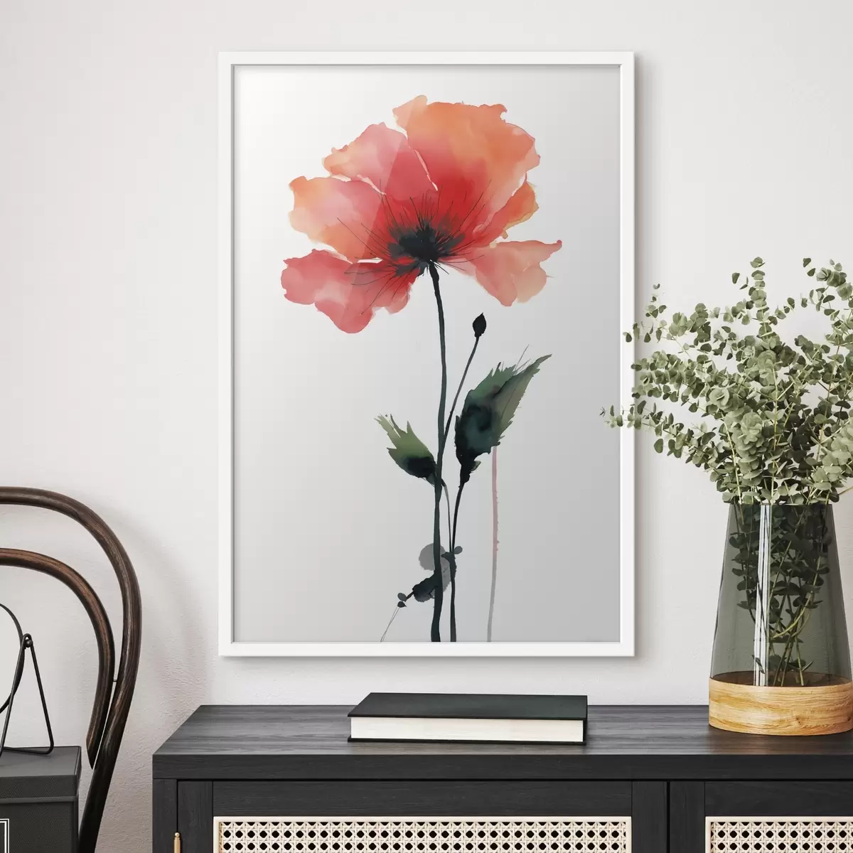 Poster Papavero acquerellato in una tavolozza tranquilla con morbide transizioni di colore f47087