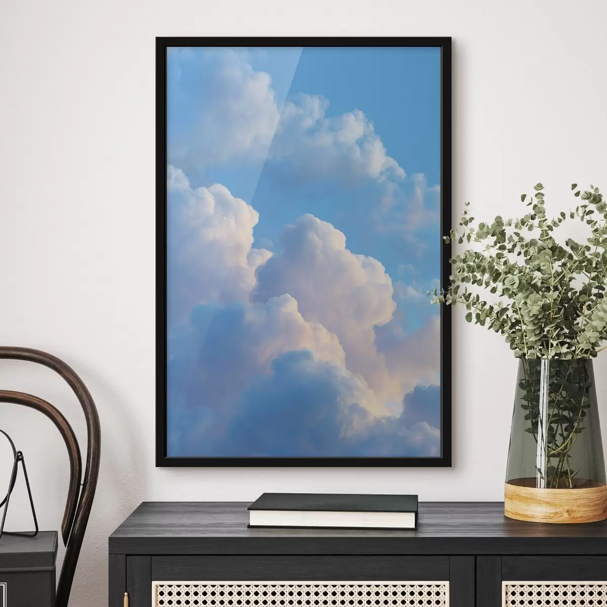 Poster Nuvole voluminose in una delicata palette di blu e rosa in stile grafico digitale fotorealistico Nr f47088