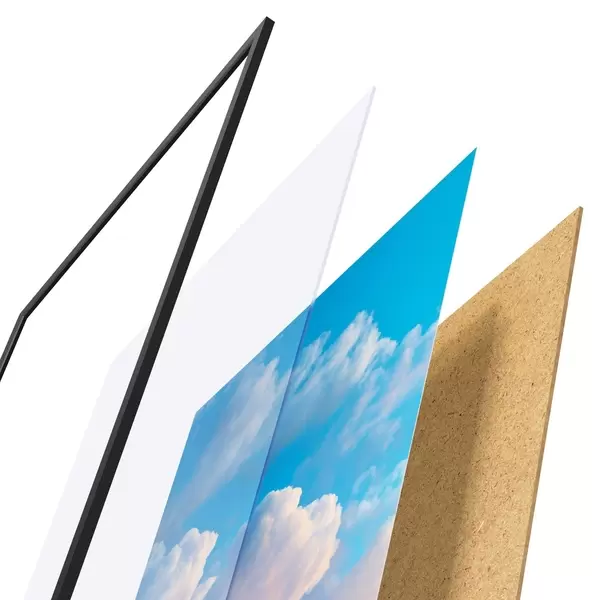 Il poster è composto da cornice, plexiglass, immagine stampata e supporto in truciolato. Il poster può essere immediatamente appeso alla parete grazie ai supporti sul retro.
