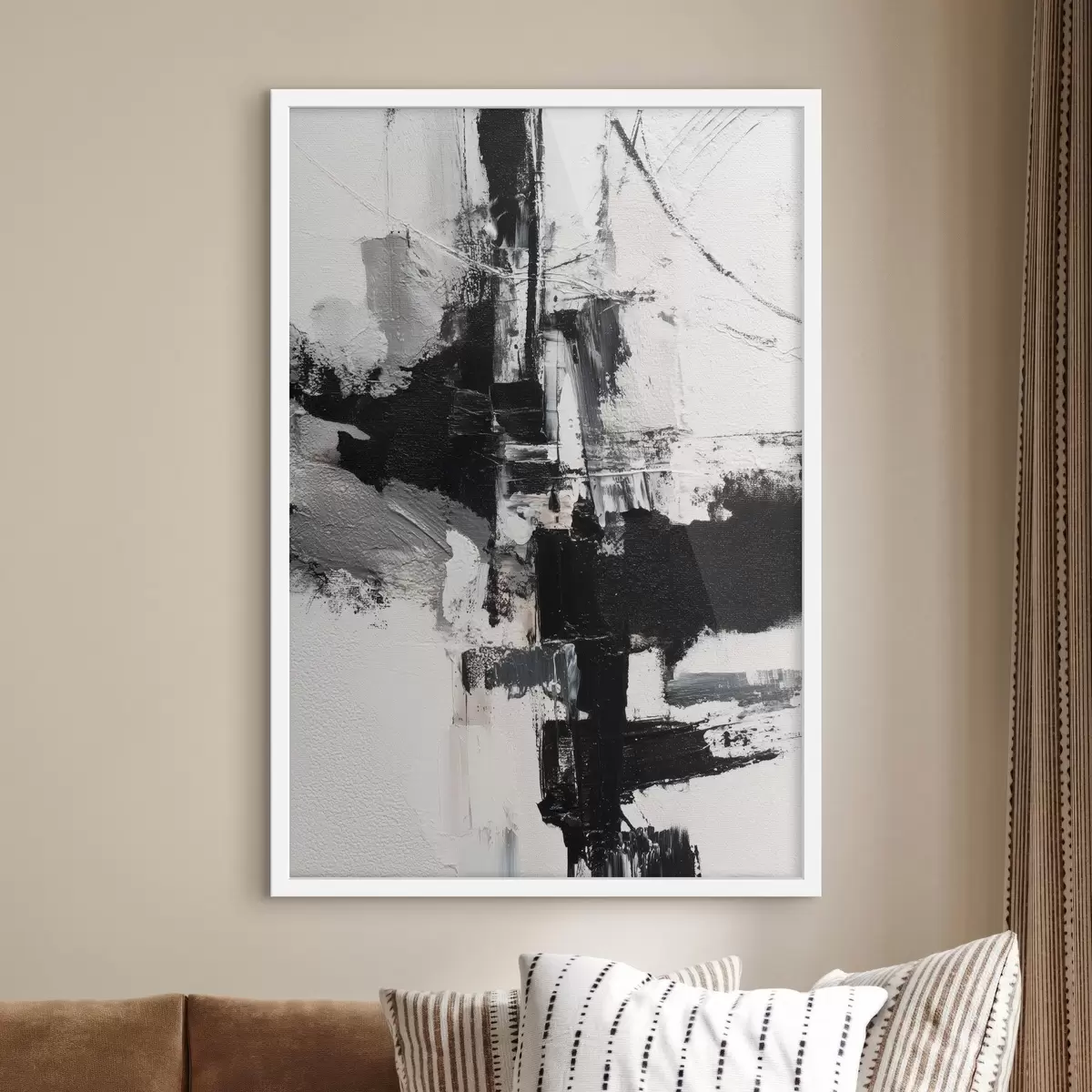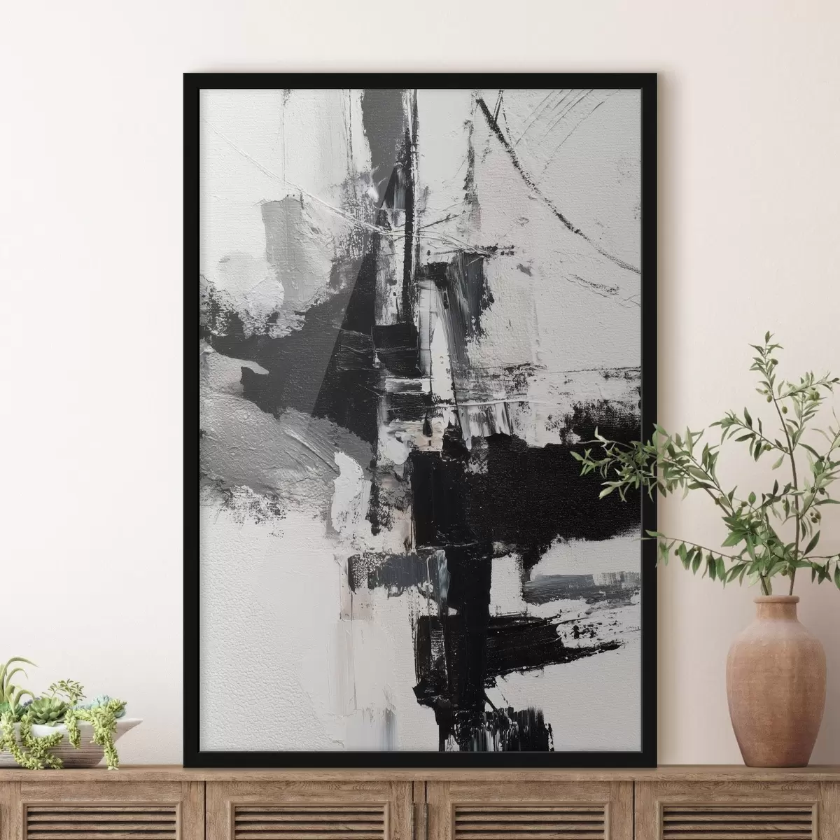 Poster Illustrazione strutturata con pennellate contrastanti in nero e grigio in stile pittura a olio Nr f47091