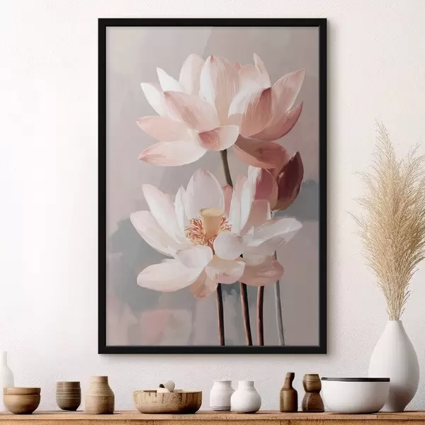 Poster Delicati fiori di loto rosa su sfondo pastello in stile pittorico moderno Nr f47092