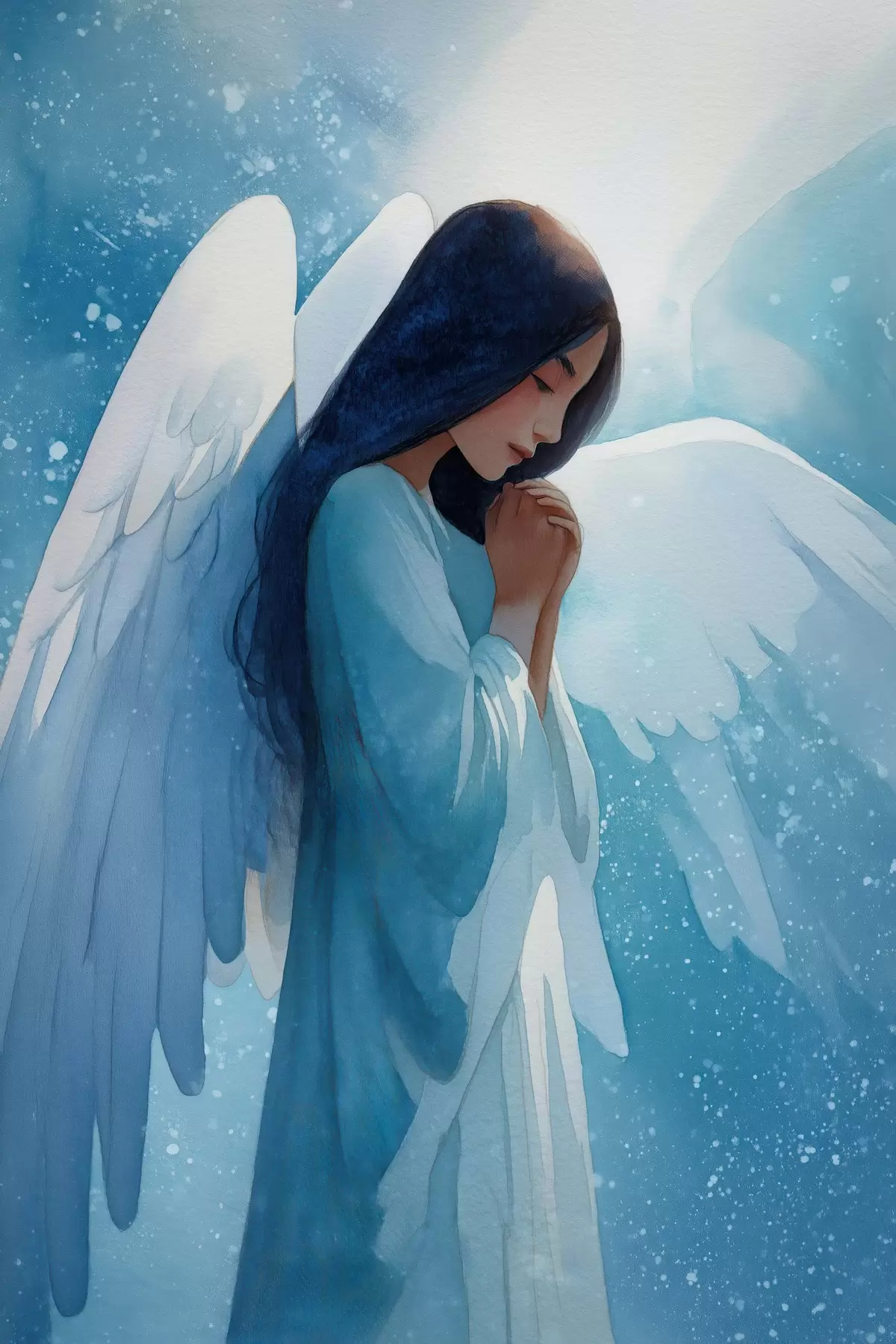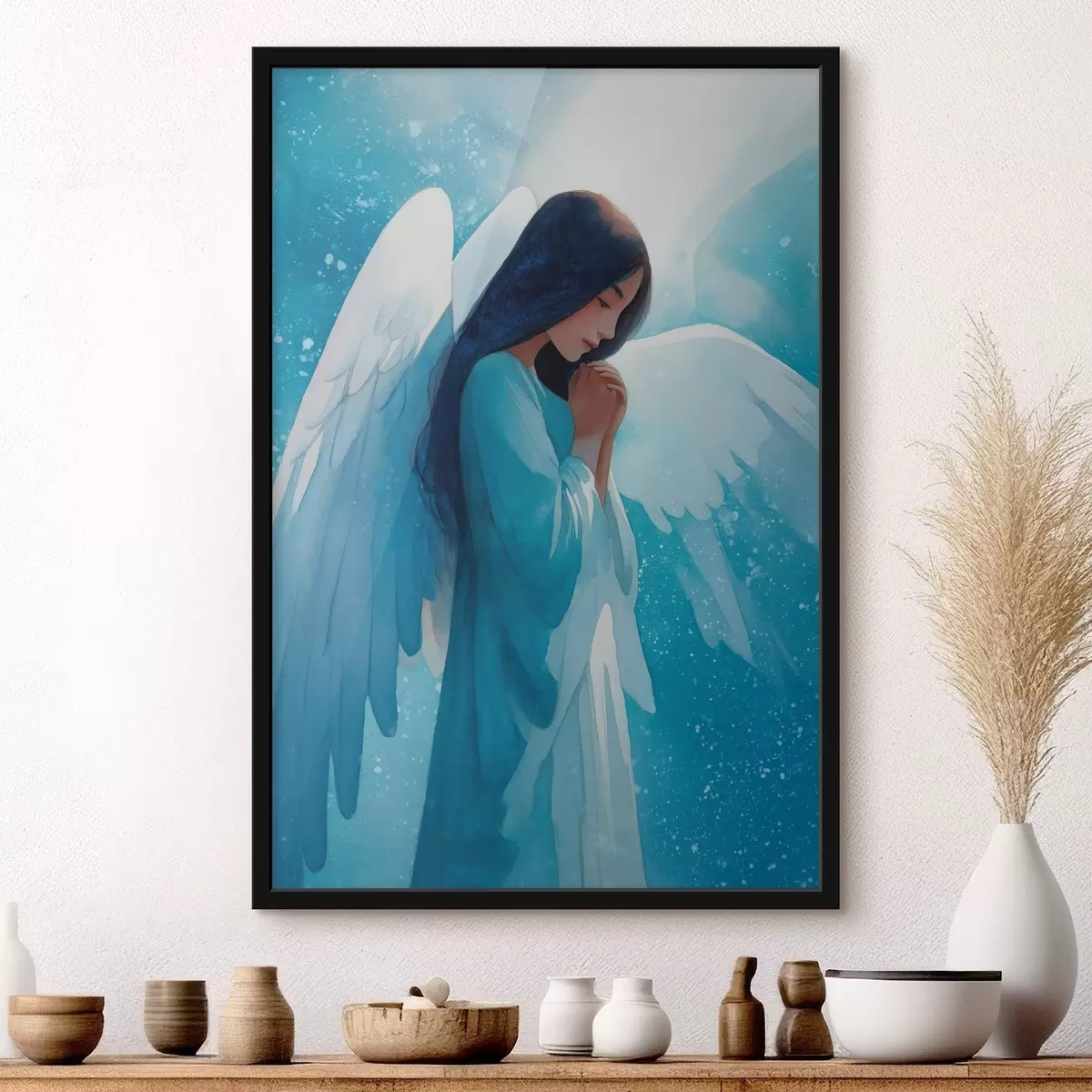 Poster Armonia acquerellata: angelo nella luce su sfondo blu Nr f47094