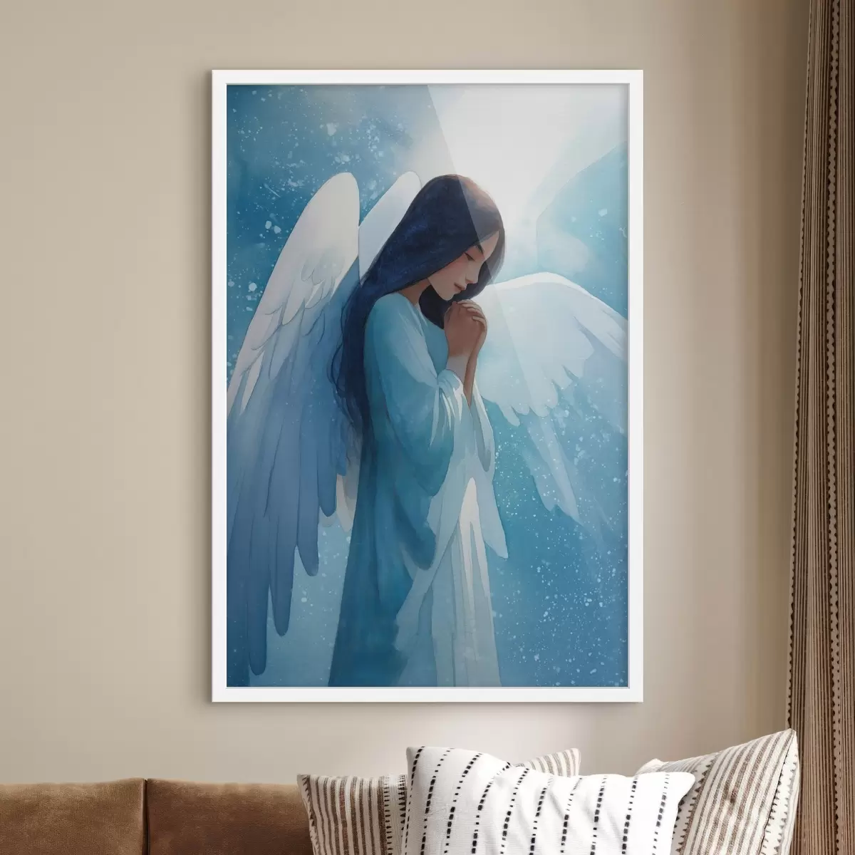 Poster Armonia acquerellata: angelo nella luce su sfondo blu f47094