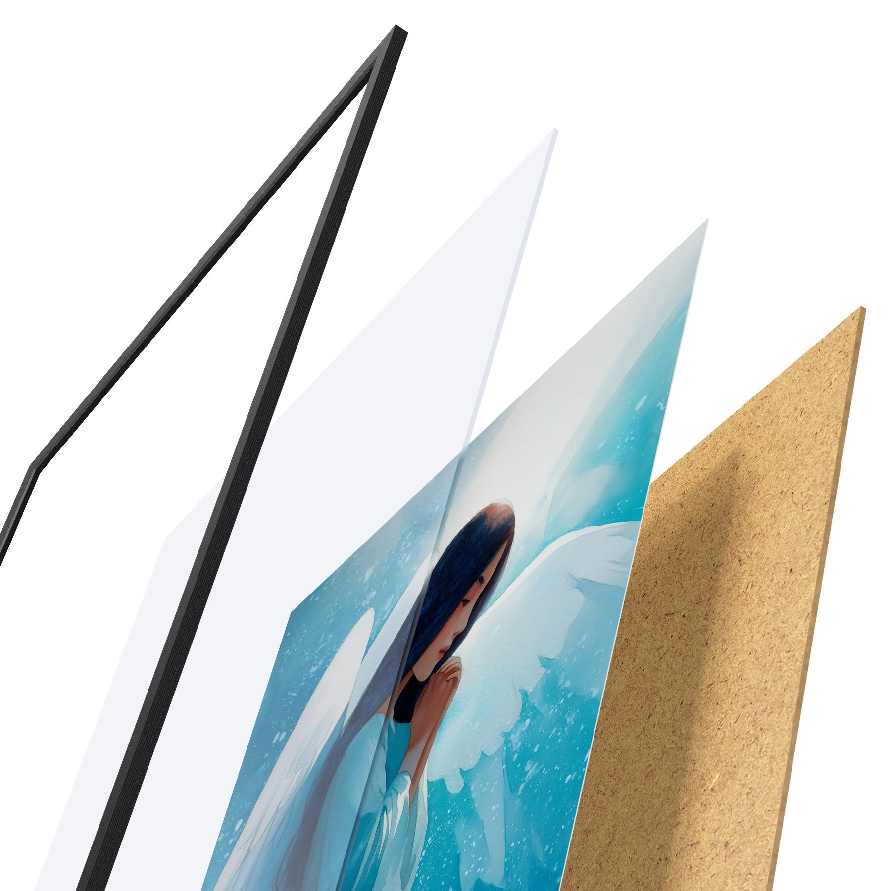 Il poster è composto da cornice, plexiglass, immagine stampata e supporto in truciolato. Il poster può essere immediatamente appeso alla parete grazie ai supporti sul retro.