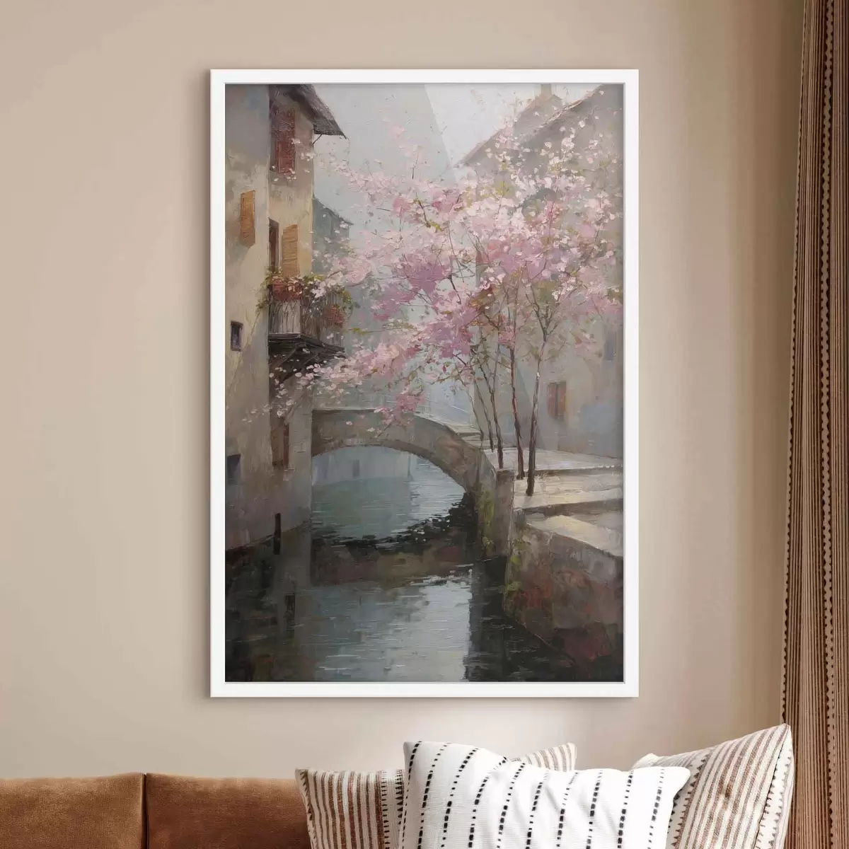 Poster romantico paesaggio urbano con un albero in fiore nello stile della pittura a olio Nr f47127