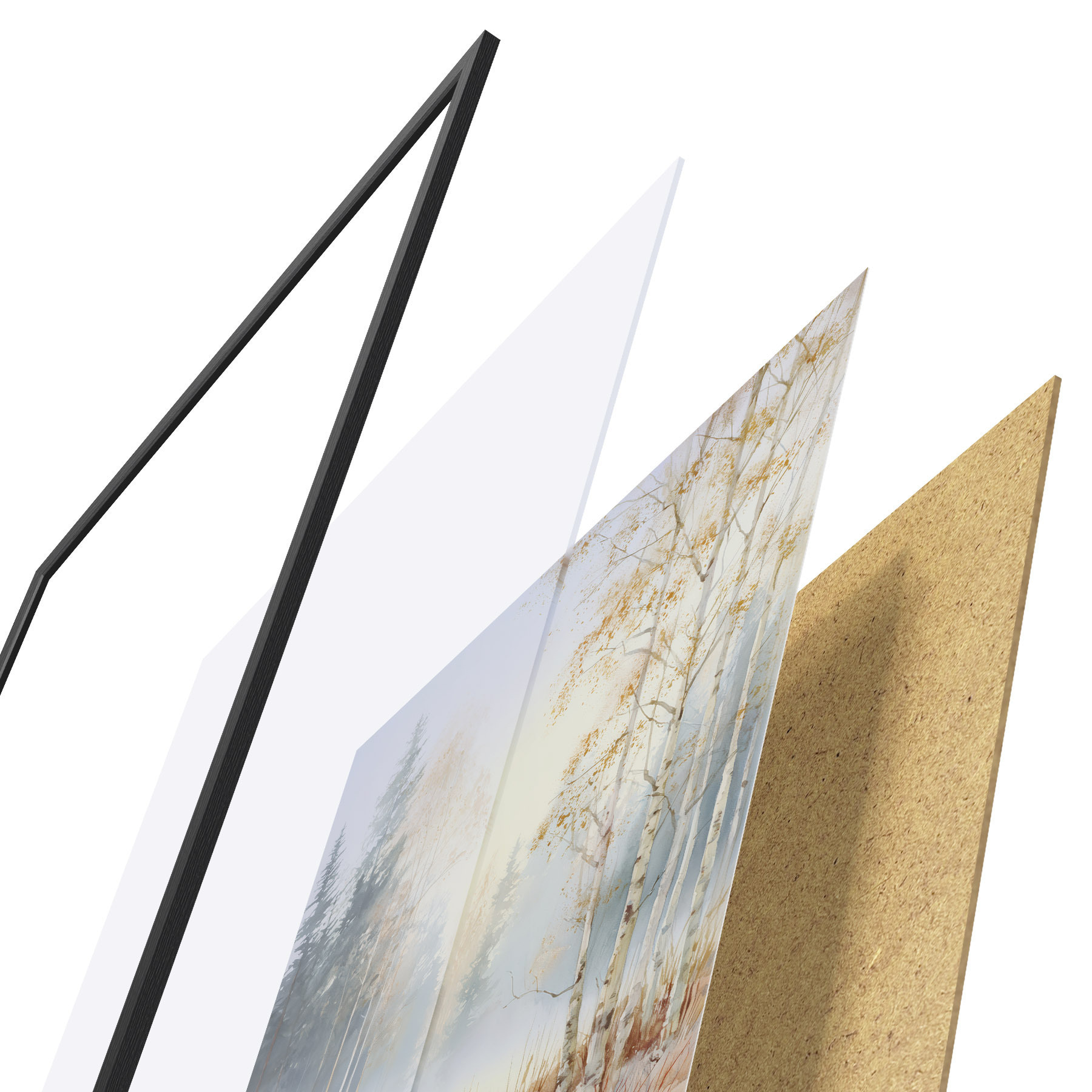 Il poster è composto da cornice, plexiglass, immagine stampata e supporto in truciolato. Il poster può essere immediatamente appeso alla parete grazie ai supporti sul retro.