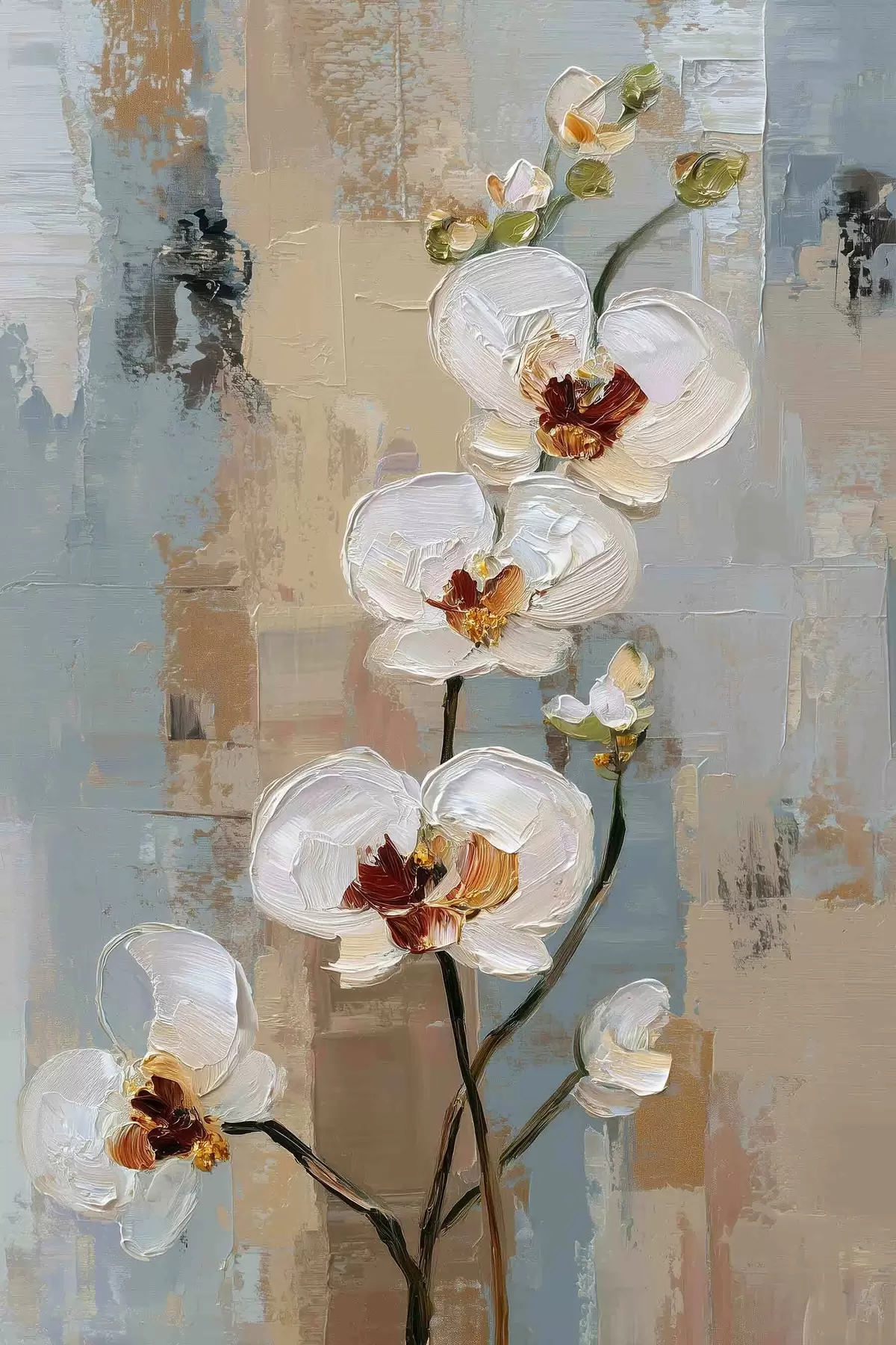 Poster fiori di orchidea bianca in stile pittura a olio Nr f47131