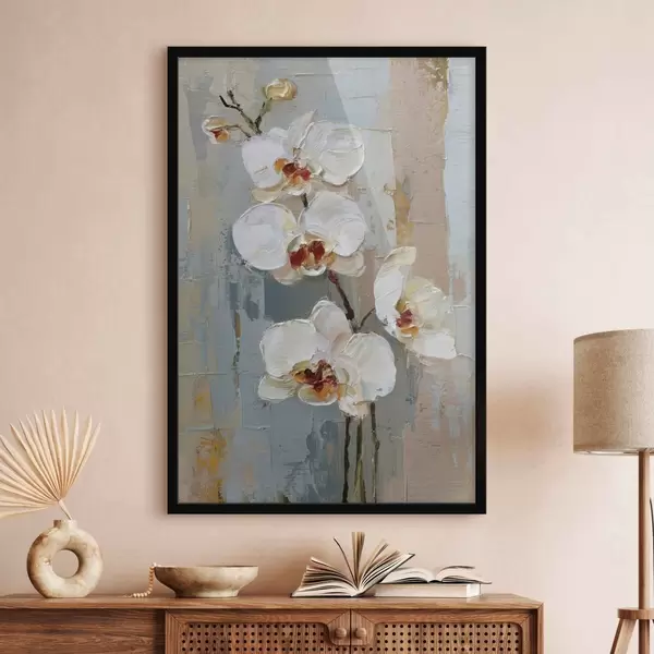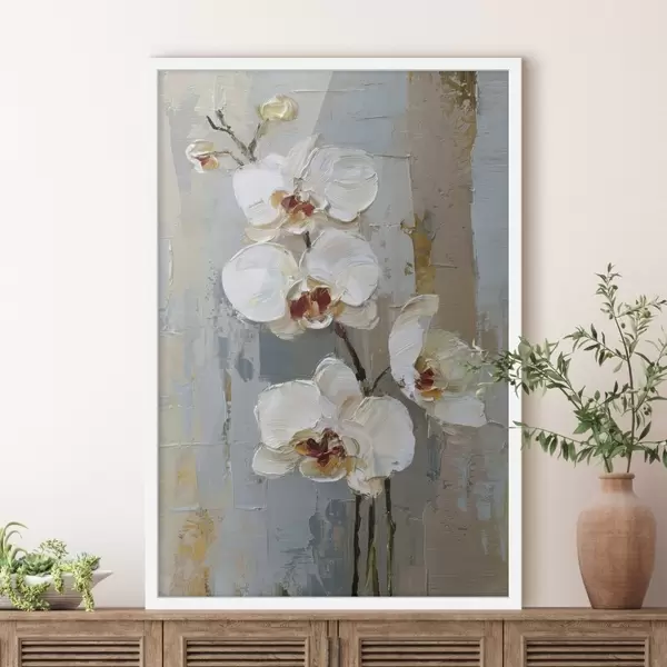 Poster fiori di orchidea bianca in stile pittura a olio Nr f47132