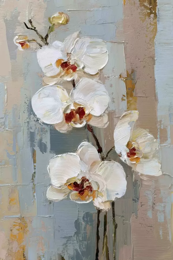 Poster fiori di orchidea bianca in stile pittura a olio Nr f47132