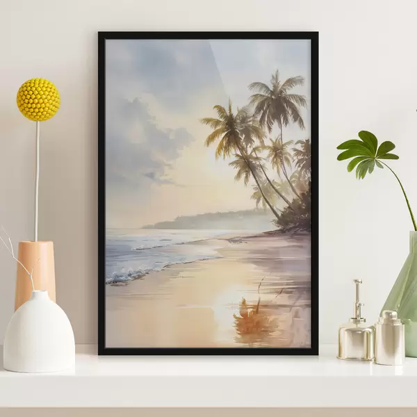 Poster tramonto sulla spiaggia di un'isola in stile acquerello Nr f47135
