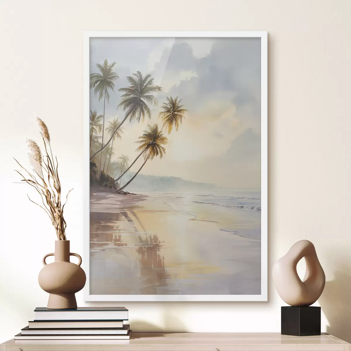 Poster tramonto sulla spiaggia di un'isola in stile acquerello Nr f47136