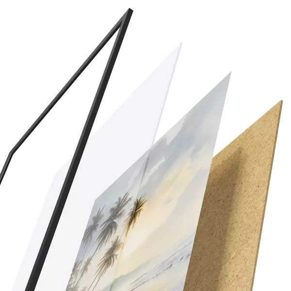 Il poster è composto da cornice, plexiglass, immagine stampata e supporto in truciolato. Il poster può essere immediatamente appeso alla parete grazie ai supporti sul retro.