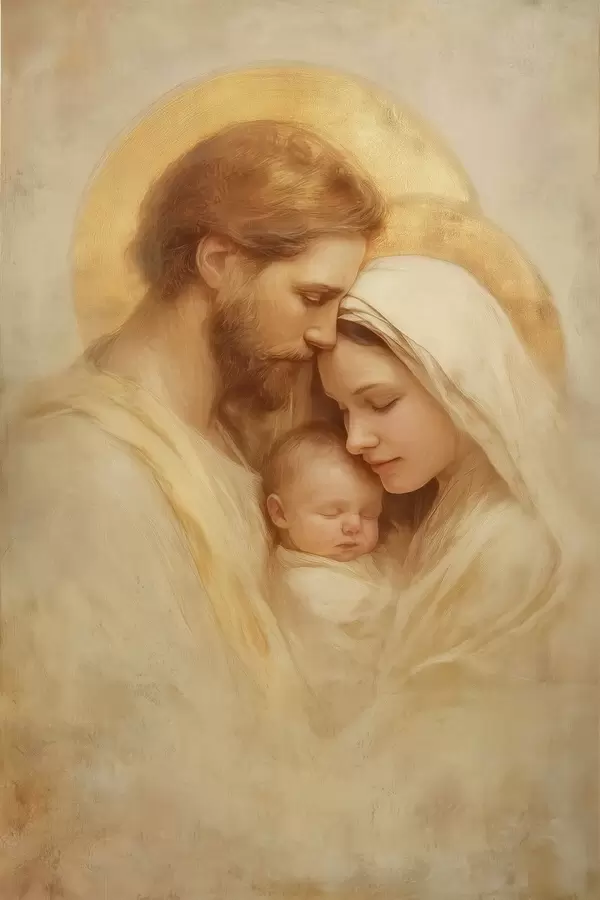 Poster La Vergine Maria e Giuseppe con il Bambino Gesù nello stile di un antico affresco Nr f47141