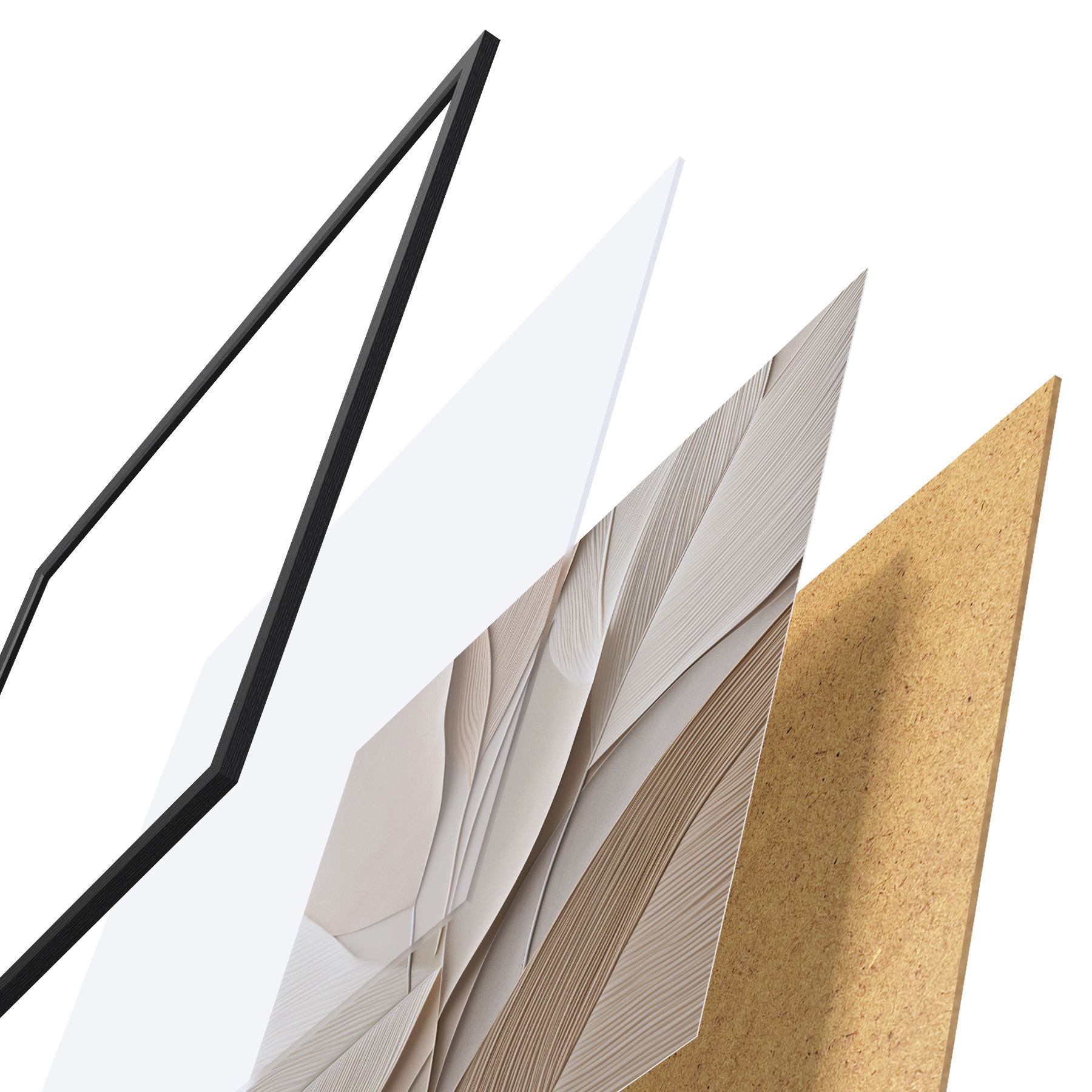 Il poster è composto da cornice, plexiglass, immagine stampata e supporto in truciolato. Il poster può essere immediatamente appeso alla parete grazie ai supporti sul retro.