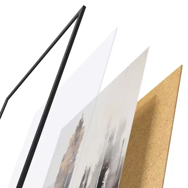 Il poster è composto da cornice, plexiglass, immagine stampata e supporto in truciolato. Il poster può essere immediatamente appeso alla parete grazie ai supporti sul retro.