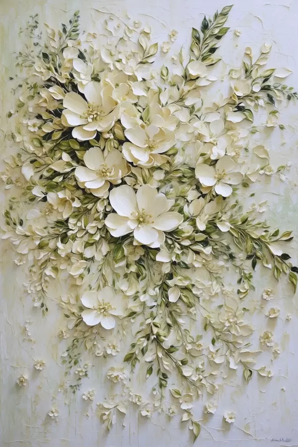 Poster Grande composizione di fiori color crema e foglie Nr f47267