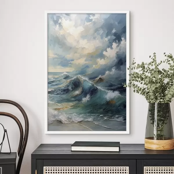 Poster Onde del mare sotto un cielo nuvoloso e luminoso f47275