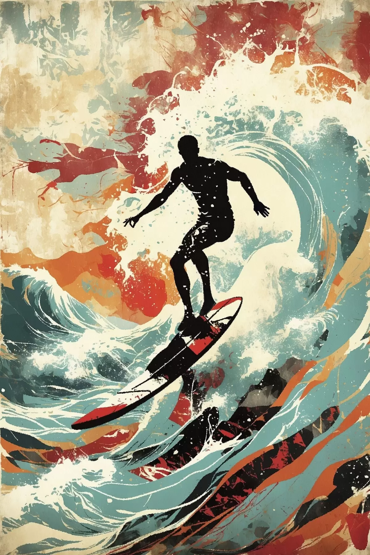Poster Sagoma di surfista sulle onde in colori vivaci Nr f47284