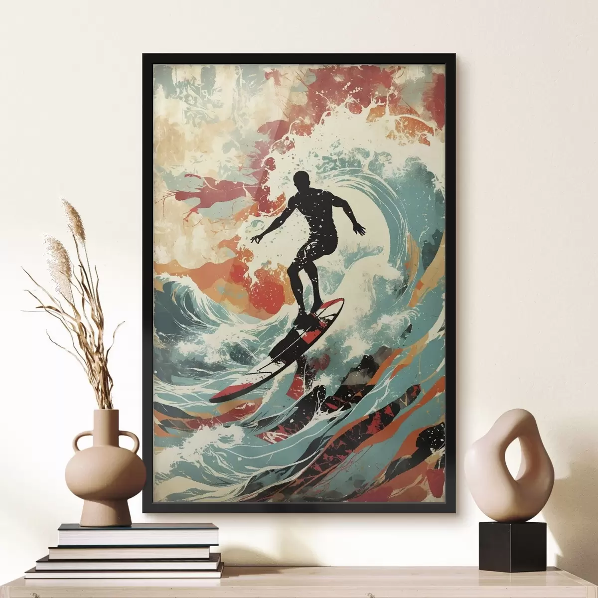 Poster Sagoma di surfista sulle onde in colori vivaci f47284