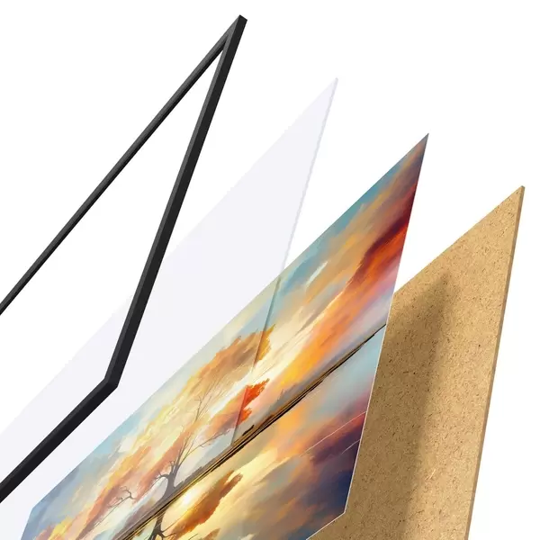 Il poster è composto da cornice, plexiglass, immagine stampata e supporto in truciolato. Il poster può essere immediatamente appeso alla parete grazie ai supporti sul retro.