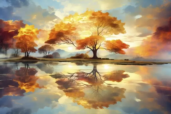 Poster Alberi vivaci riflessi nell'acqua Nr f47287