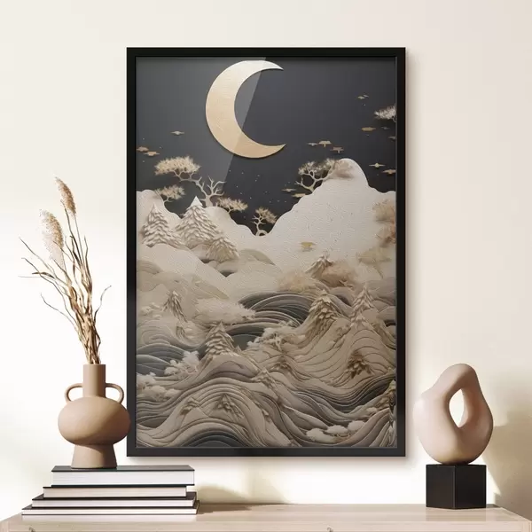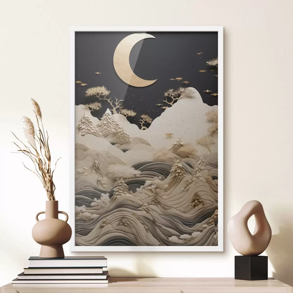 Poster Montagne e alberi stilizzati sotto la luna Nr f47300